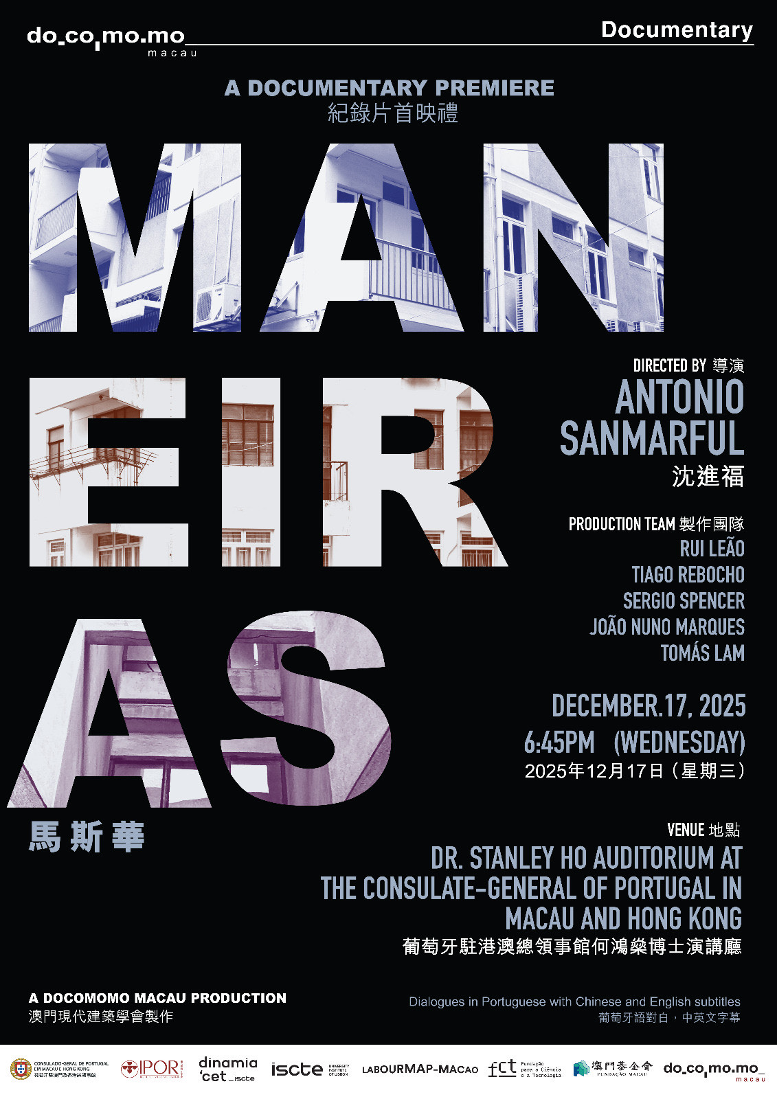 EventosDocumentário sobre José Maneiras exibido amanhã no Consulado Andreia Sofia Silva - 16 Dez 2025 A DOCOMOMO Macau apresenta amanhã no auditório Stanley Ho, no Consulado-geral de Portugal em Macau e Hong Kong, o novo documentário de António Sanmarful sobre a vida do arquitecto José Maneiras, recentemente falecido. A sessão começa às 18h45 e visa recordar uma “figura incontornável do modernismo em Macau”. Apresenta-se neste filme “uma visão aprofundada sobre o contributo singular de José Maneiras para a arquitectura moderna no território”. Com recurso a entrevistas, imagens de arquivo e visitas às obras mais emblemáticas, o documentário produzido pela DOCOMOMO “regista e valoriza o legado de um criador cuja influência permanece visível na paisagem urbana de Macau”. Segundo uma nota da DOCOMOMO, José Maneiras, macaense nascido em 1935, formado na Escola de Belas Artes do Porto, “destacou-se pela sua abordagem inovadora, pela integração sensível entre forma e função e pela capacidade de interpretar o espírito do modernismo num contexto multicultural e em rápida transformação”. “A sua obra constitui hoje um testemunho fundamental da evolução arquitectónica de Macau na segunda metade do século XX”, defende ainda a DOCOMOMO, que, com este documentário, pretende “reforçar o compromisso com a documentação, conservação e divulgação da arquitectura moderna, promovendo o debate público sobre a importância do património construído e da memória colectiva”. Uma vida preenchida Além da actividade profissional como arquitecto, Maneiras foi, ainda antes do 25 de Abril de 1974, uma figura ligada à política local, tendo depois estado ligado à criação do Centro Democrático de Macau. Foi também presidente da então Câmara Municipal do Leal Senado, entre os anos de 1989 e 1993. Na sua área de formação, integrou o grupo de fundadores da Associação de Arquitectos de Macau, em 1987, de que também foi presidente. Colaborou, anos mais tarde, com nomes como Carlos Marreiros, e o engenheiro José Chui Sai Peng, nomeadamente na requalificação da praça do Tap Seac. Em termos de obra feita, destaca-se um dos primeiros conjuntos habitacionais com a sua assinatura, de 1964, o São Francisco, em frente ao Clube Militar; ou ainda o bloco Fon Wong, de 1966, junto às Ruínas de São Paulo. Na Areia Preta existe ainda a “Casa para Cegos”, construída em 1971.