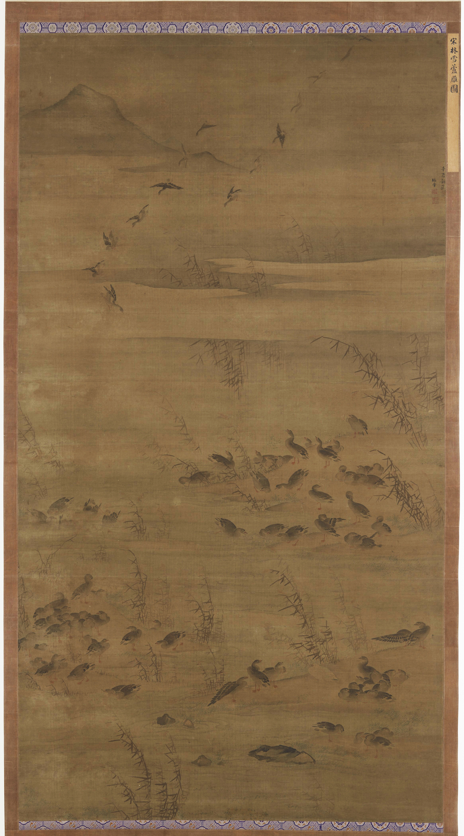 Via do MeioA Suave Descida Dos Gansos De Lin Xue Paulo Maia e Carmo - 20 Dez 2025 Li Liufang (1575-1629), o pintor e poeta que viveu por um tempo retirado no seu Jardim da madeira de sândalo, perto do Lago do Oeste, valorizava o afecto entre amigos alongando-se aos que viviam distantes e até mesmo àqueles que já não viviam mas deixaram impressivos traços da sua relação afectuosa com o mundo. De entre os viventes, alguns eram eminentes funcionários e eruditos apreciadores das artes como Dong Qichang (1555-1636) mas também considerava seus pares mulheres que claramente exprimiam com o pincel as mais subtis emoções. Entre elas estava uma antiga cortesã com quem se correspondia, nascida em Min (Fujian) mas que se mudara para Hangzhou junto ao Lago do Oeste, onde haveria de se casar e viver no seio de uma família tradicional. Chamava-se Lin Xue, também conhecida como Lin Tiansu, e nesse início do século XVII, o seu nome de talentosa poetisa e pintora seria notoriamente referido pelo respeitado Dong Qichang: «Ouvi falar de senhoras capazes na arte da pintura; a primeira foi Lin Tianxu e depois Wang Youyun.Tiansu mostrou uma beleza sem rival e Youyun, à vontade num estilo próprio.» Ao contrário do habitual em senhoras que se dedicavam à pintura, ela atreveu-se a realizar pinturas de montanhas e águas correntes (shanshui) como se observa no longo e cadenciado rolo horizontal que mostra um Cenário de Jiangnan (tinta e cor sobre papel, 33,7 x 447,5 cm, no Museu do Palácio Nacional, em Taipé) que se vai desenrolando como uma peregrinação. A sua vocação e engenho na arte da pintura também podem ser confirmados em obras como no rolo ousadamente vertical de 1621, Ameixeira e bambu (tinta e cor sobre papel, 86 x 18,6 cm no Instituto de Arte de Chicago). Nele está figurada a ideia da longanimidade; na base, o bambu que resiste às forças do vento, da chuva e da neve e, subindo irresistivelmente, a ameixeira cuja flor desponta ainda antes do fim do Inverno. Plantas gratas a poetas e pintores letrados, tal como um tema que se vê num rolo vertical que ecoa uma tradição com origem no século onze. Lin Xue mostra nessa pintura de Gansos descendo nas areias das margens (tinta e cor sobre seda, 185,1 x 99,5 cm, no Smithsonian), as aves aquáticas surgindo no espaço pintado a partir do limite superior da página num ondulante e seguro movimento vertical até pousarem na areia. O tema Pingsha luoyan, associado à mudança da estação «quando o yin aumenta», que é parte da memória de várias artes, é referido numa introdução a uma notação para uma música no guqin, que se diria um comentário adequado à pintura de Lin Xue: «Face ao claro céu do Outono o ar é nítido e fresco enquanto a brisa se demora calma nas areias tocadas pela água. Por entre as nuvens estendendo-se na distância, voando e cantando, bandos de gansos encarnam as altas aspirações dos que vivem isolados por um excesso de sensibilidade.»