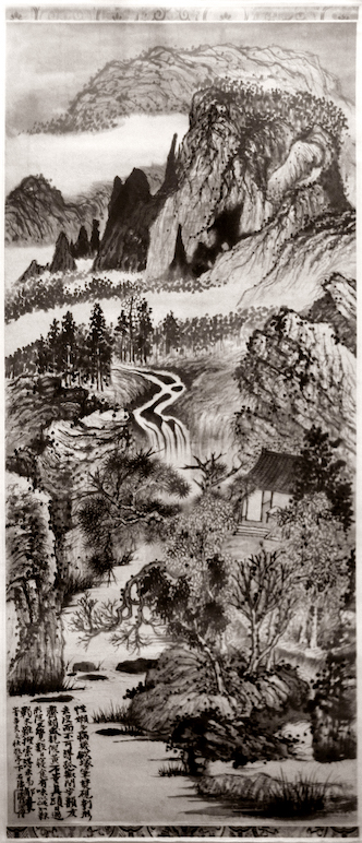 Como Shitao que em 1671 evocou a montanha Jingting, grandiosa e estranhamente irrequieta como o seu carácter, no tempo da grande mudança do Outono (rolo vertical, tinta sobre papel, 86 x 41,7 cm, no Museu Guimet).